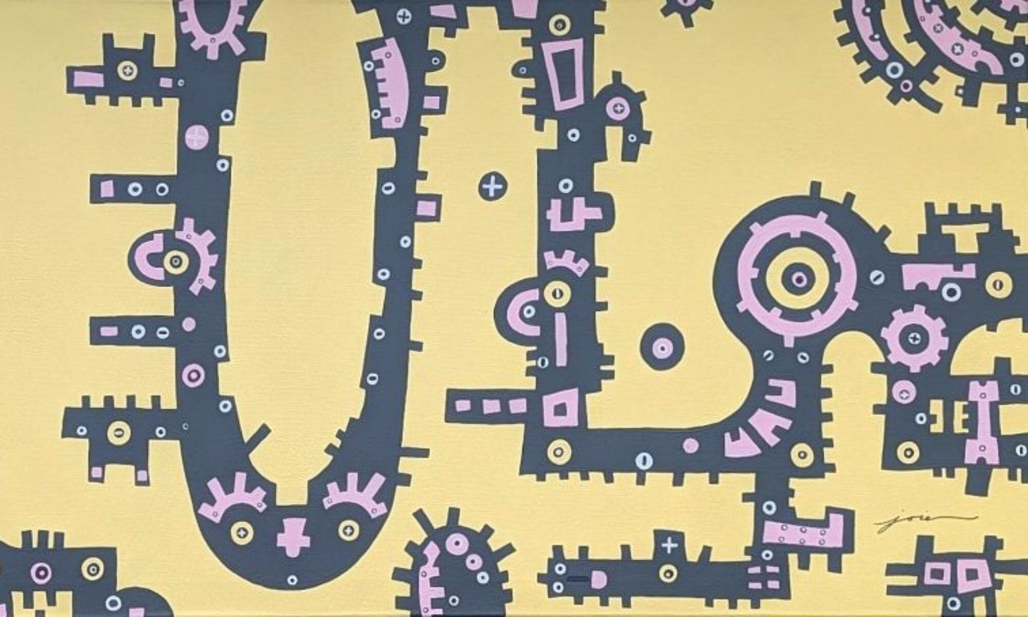 Joie Arnold (1969) is an autistic Jewish-American artist living and working in Kansas City, whose work explores themes of self-identity, hope and the human experience. As a person with synesthesia, Joie sees images and color when hearing sound, a gift that has transformed her “otherwise ordinary life, into extraordinary living“. Her unique perspective has helped produce visual art that is bold in original design, rich in color, line, texture, and given voice to her most visceral experiences.