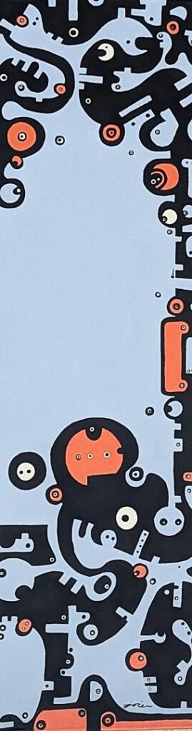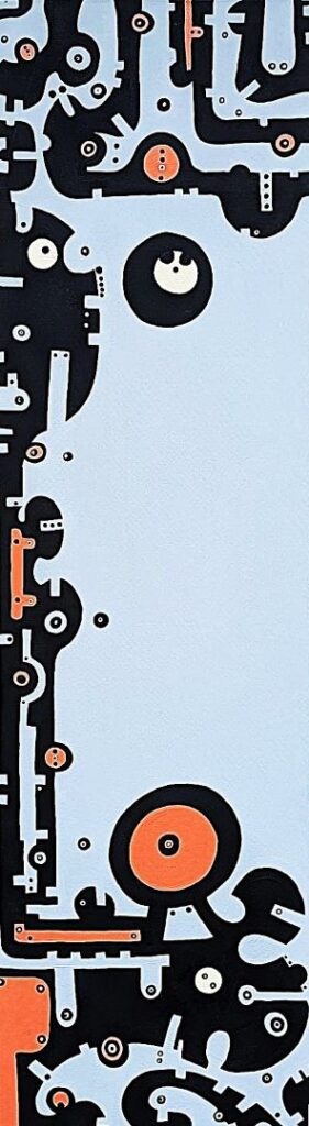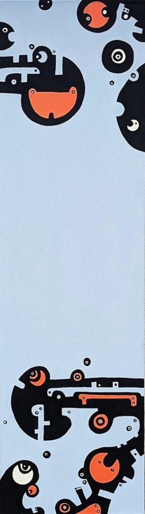 The Machine Shop. Latex on canvas. Three panels: 49” x 12”. 2025
